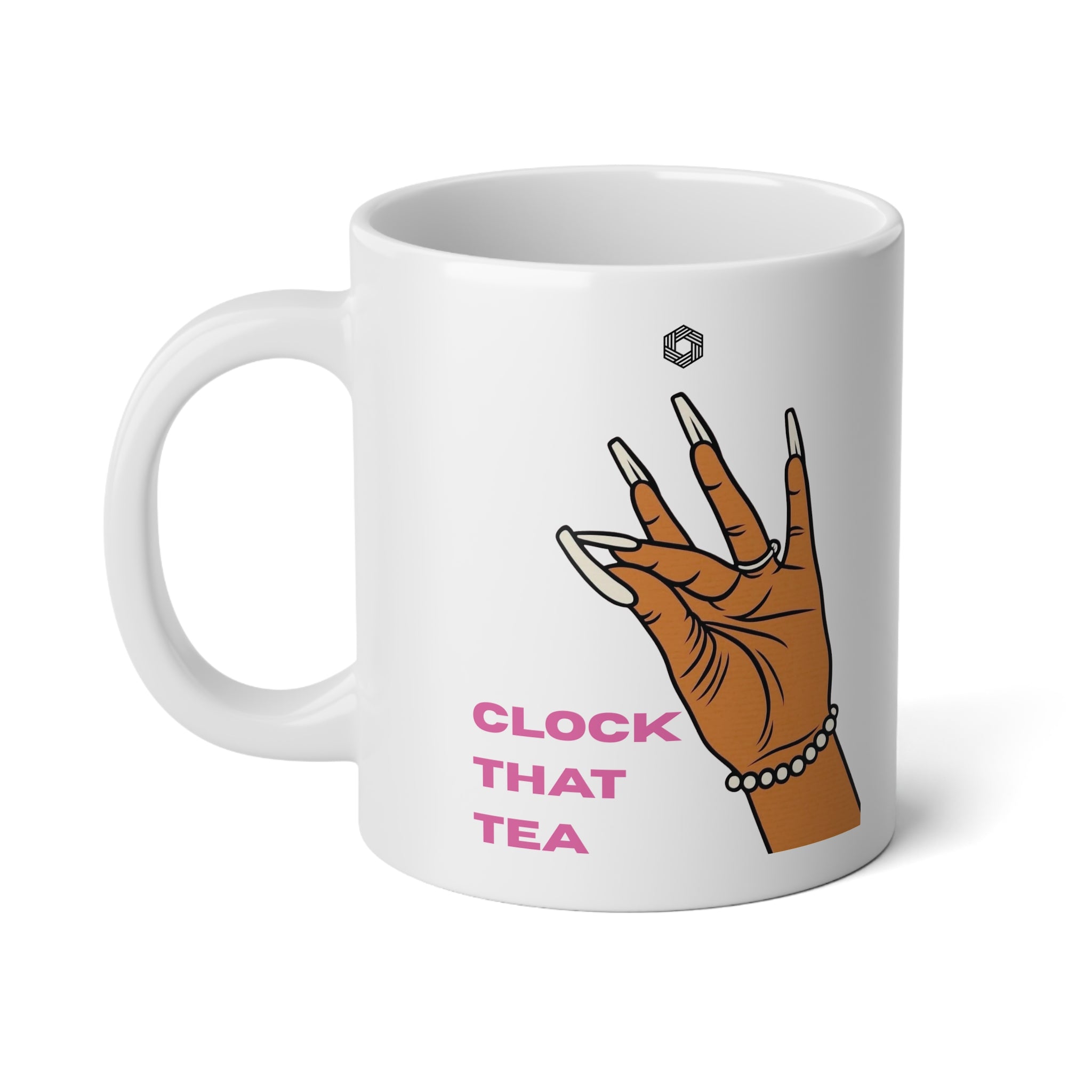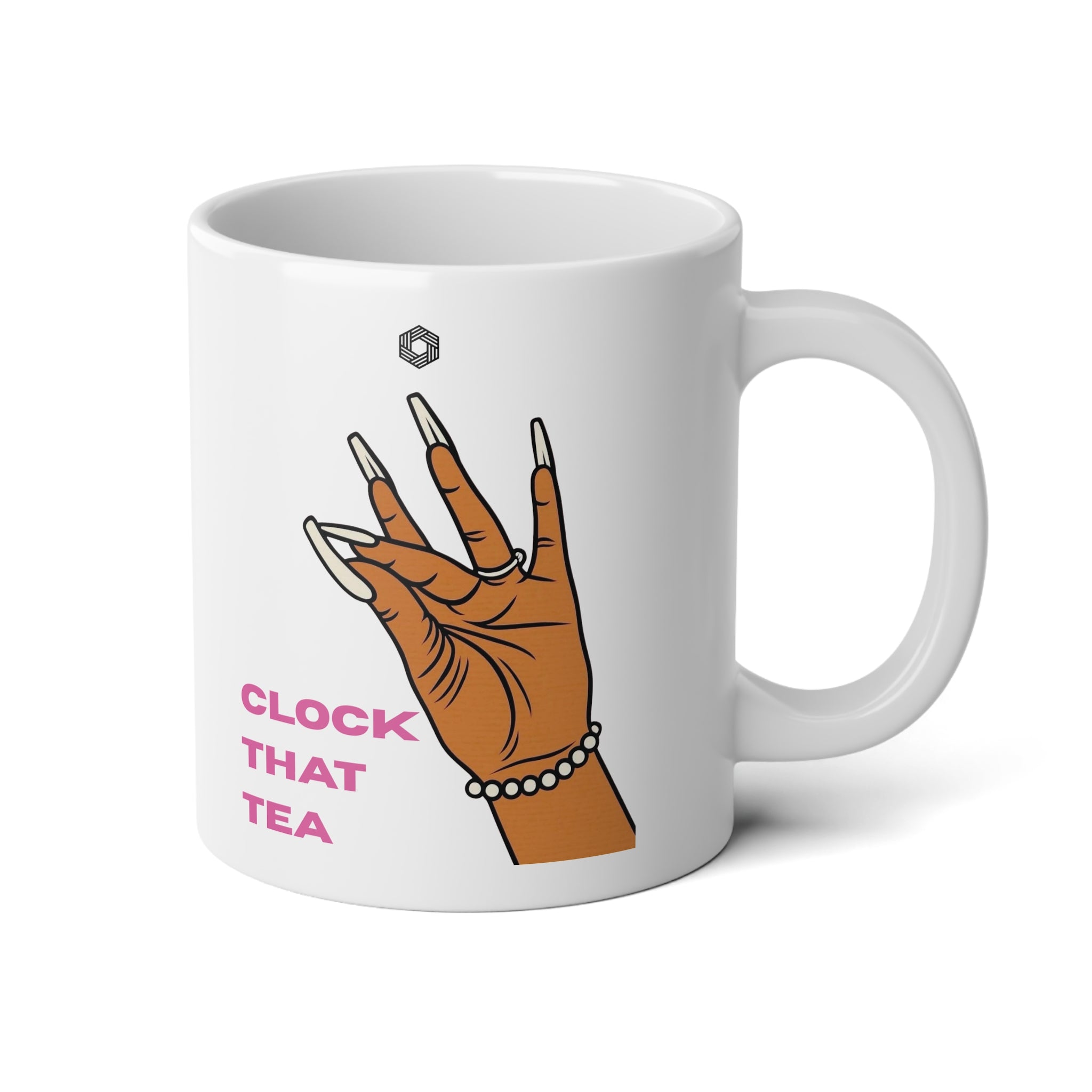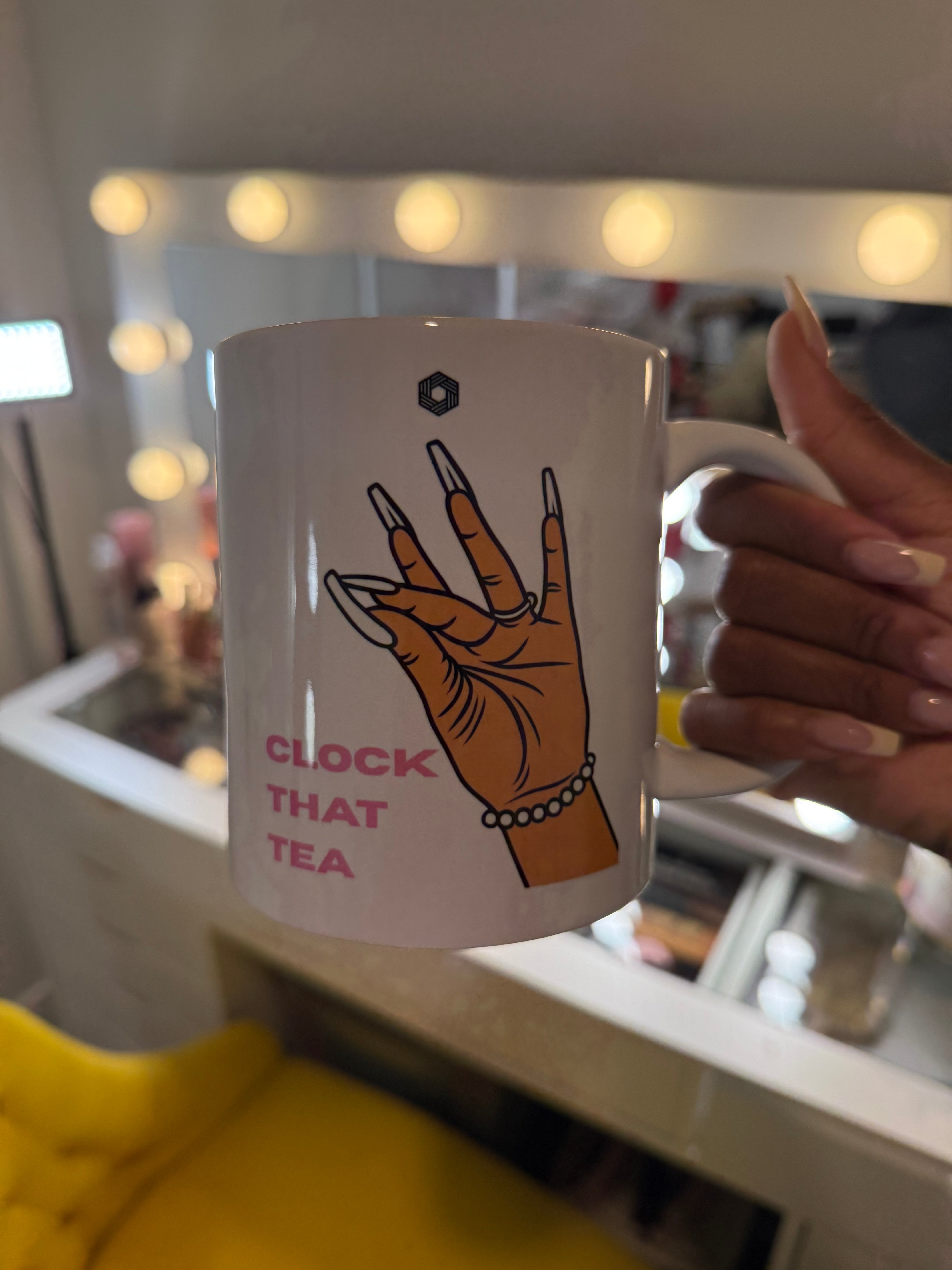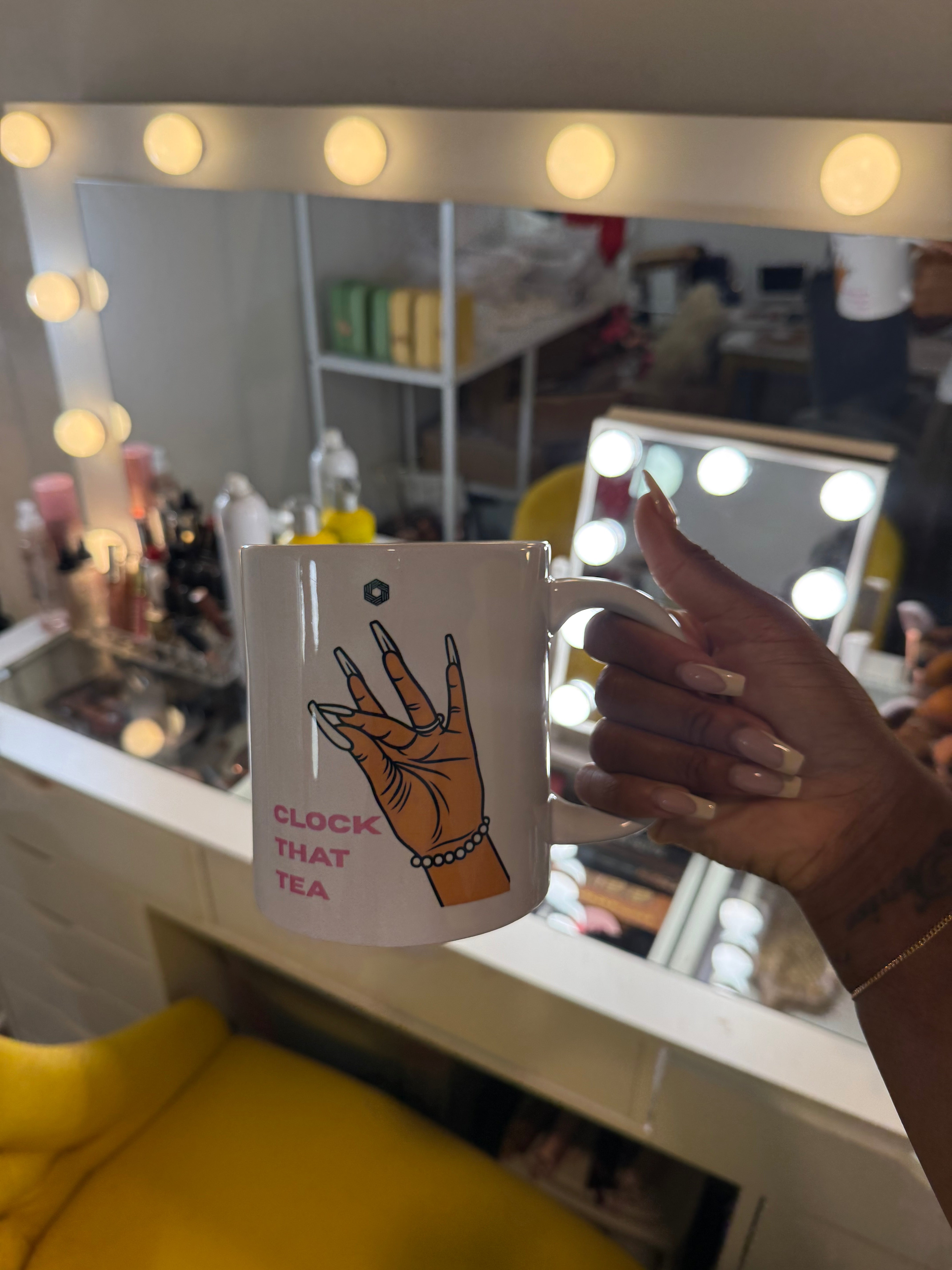 Sip your tea and serve attitude with the Clock That Tea mug — where style meets sass. Durable ceramic, bold design, and unapologetically you.